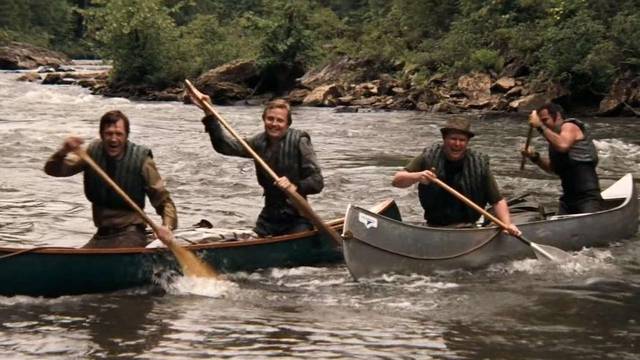 Deliverance also reflects the fears of it’s time. Fear of environmental catastrophes, and how modern man could survive them. Destruction of natural environments by humanity’s hands. Certainly, such fears and concerns remain with us, in some different fashions, but with us none the less. This is mostly embodied in the somewhat rough friendship of Ed (Jon Voight) and Lewis (Burt Reynolds). They appear to be long time friends, who have gone on similar outings in the past. Lewis is a self styled “survivalist” who thrives in the wilderness and is critical of the modern world. Ed, on the other hand, is a happy family man, with a comfortable life and job. It’s unclear in the film how they met or how it came to be that they take these trips, we only know this is not the first one due to Lewis asking Ed why he goes on these trips.