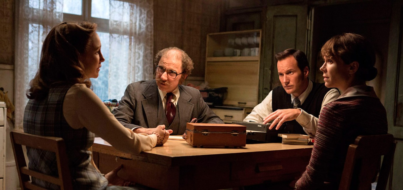 Patrick Wilson and Vera Farmiga are engaging as the Warrens. The chemistry is there, and their love and compassion for others pours from the performances. I do not know if the film versions of the Warrens are accurate to the real life Warrens, but I tell you this, I really like the Warrens in these films. But they are not the only performances of note. Madison Wolf is compelling and heartbreaking. Her fear makes you want to do whatever you can to protect this kind hearted child from whatever evil is attacking her. Simon McBurney’s Maurice Grosse starts out seeming like your typical researcher excited by the potential for himself. But you find he is genuinely concerned for Janet and has very personal reasons for wanting to prove the existence of an afterlife.