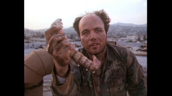Yes, this film is almost entirely a flashback, reusing a whole lot of footage from the first film.  It is not particularly well acted or well written.  In one scene, Ricky appears behind a nun and yells boo.  I mean, he yells it like “Boooooooo!”    The effects are pretty mundane, and the one liners pretty weak.  Okay, the utterly ridiculous “Trash Day!!!” as Ricky shoots a guy who is bringing his trash to the curb (no idea what he did that was so naughty) is kind of funny.  It even appears on t-shirts.