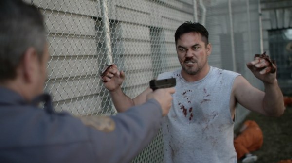 The Soska sisters have a great eye and use perspective to great effect, and make the most of Cain visually. He gives a strong performance as well. Cain seems to relish this opportunity to be so out of character. He is intense, and as he works his way through the prison inmates, he just gets more and more intense. Wight’s performance is decent enough as a heavy, but what really stands out? His size. And the Soskas know how to frame him in camera to look like a house compared to Cain. Seriously, there are time where Dean looks like an action figure next to Wight.